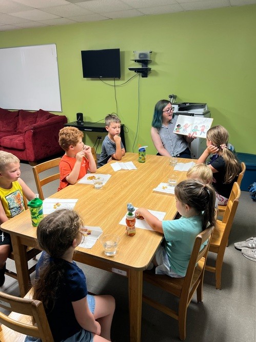 - Once in the classroom, you can pass out the provided snack and water (there is a sink in the classroom to fill the cups with - cups are on the shelf). While the children eat, you can get to know them, talk to them about their week, and read the Bible story.